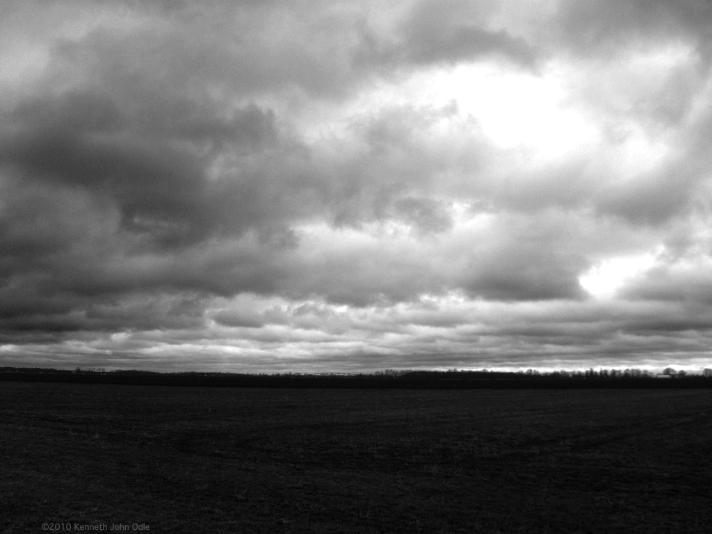 - b&w, black and white, Category: Landscape, clouds, field, horizon, sky