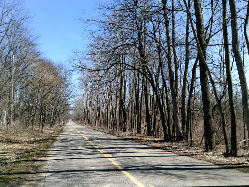 The focal point is in the bottom left corner of the image. This composition emphasizes both the sky and the stand of trees to the right.