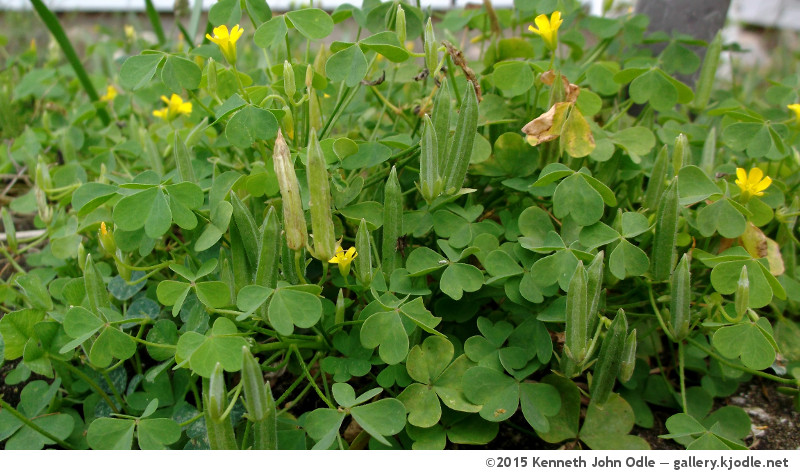 The upright seed pods of Oxalis europaea.