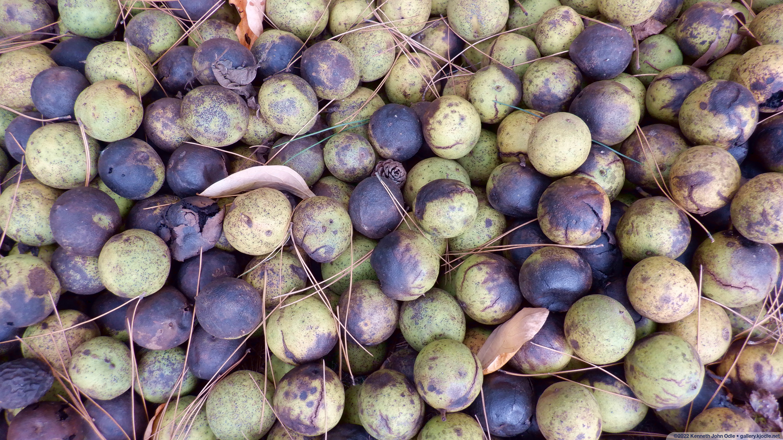 Somebody made a pile of walnuts behind our local dentist's office and it became a piece of abstract art.