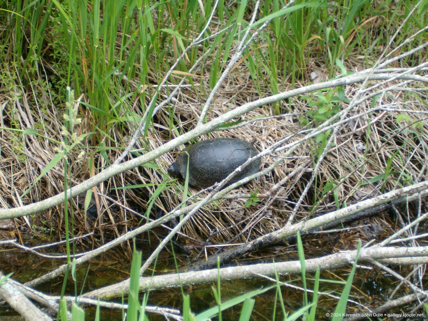 Just a turtle sunning himself above the stream. I didn't dare get any closer or try to move any of the branches out of the way for fear of scaring him. I'm just amazed at how he was able to climb up that high on what looks to be steep and slippery terrain.