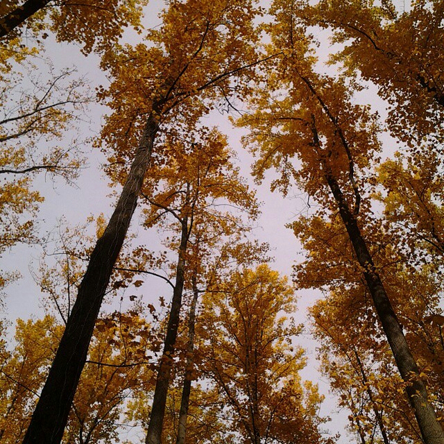 One day last fall, in the woods, with the twins. Look up.