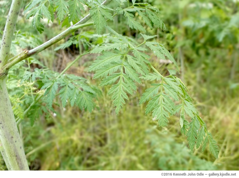 The compound leaf of Conium maculatum (poison hemlock). Warning: All parts of this plant are highly poisonous.