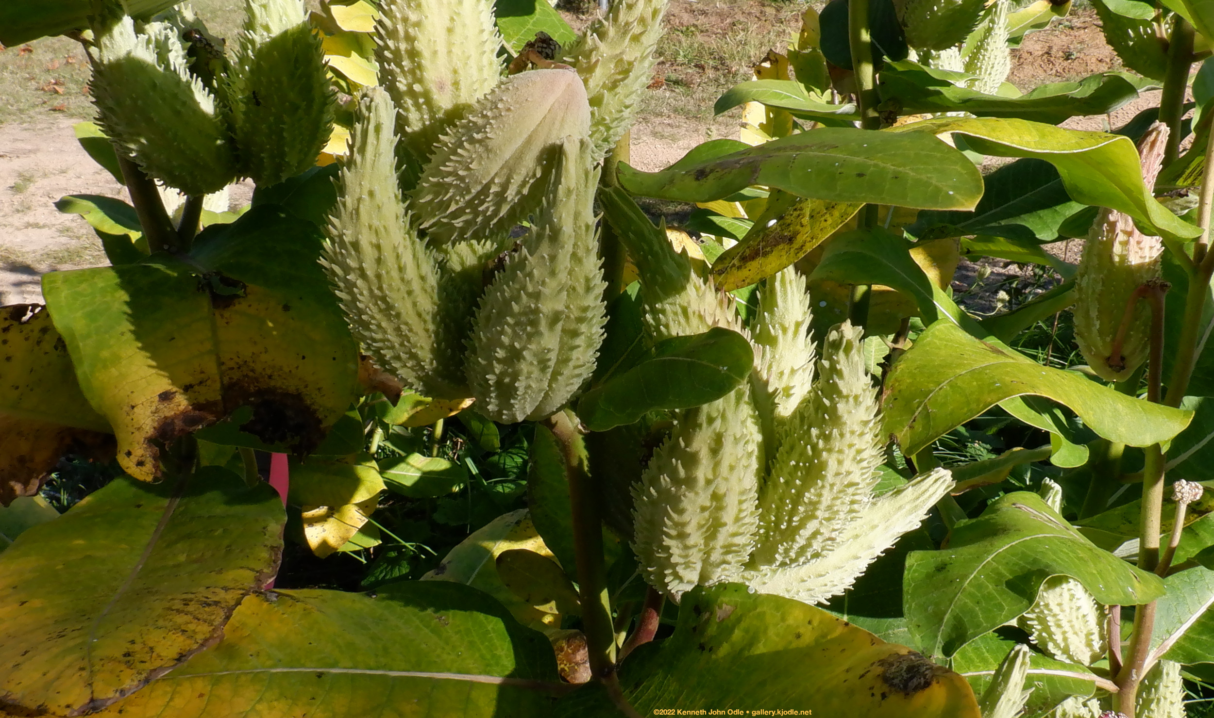 The not quite ripe seedpods of common milkweed (Asclepias syriaca).